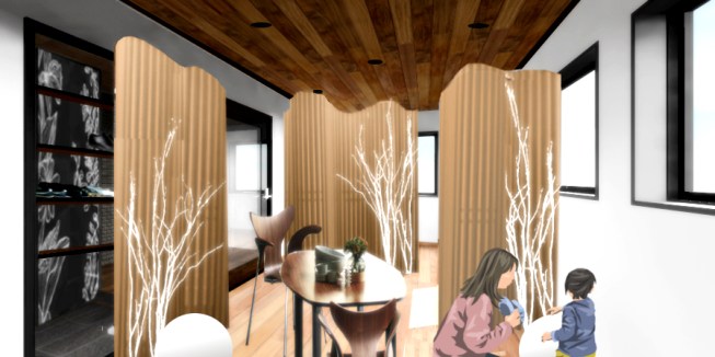 I would like to propose a waiting area at the station where people’s health can be monitored through changeable furniture.