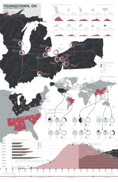 Youngstown thrived in 19th century due to its steel manufacturing. Same as the other major cities in the Rust Belt, the movement of manufacturing to the southeastern states with their lower labor costs and the liberalization of foreign trade policies due to the globalization in mid-20th century, led to the dramatic decline of the population in Youngstown after the closure of plants throughout the 1970s. 60.6% of the Youngstown population decline from the peak, second to Detroit’s 61.4% in the Rust Belt.