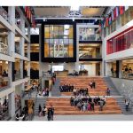 The American University of Central Asia (AUCA) in Bishkek, Kyrgyzstan reopened its doors in 2016 at a ground up new campus. The architectural design speaks to the region’s dramatic landscape and hospitality culture for an American style liberal arts college. Students entered the new welcoming quad and academic building like nomads with iPads, freely diving and settling into the many grand and intimate spaces.