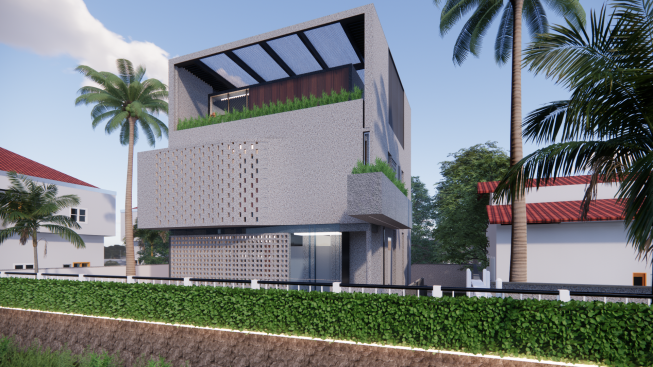 Central to HTL’s compact living ethos, the Amity Compact House integrates solar collection and energy generation through 376 ft2 (35 m2) of panels with built-in inverter batteries. The remaining rooftop accommodates a pergola with year-round plantings. On all sides, fenestration is carefully planned to ensure optimal cross ventilation in all rooms. The façade, though closed, opens with screens to enable constant airflow from the exteriors, therefore enabling a reduction in cooling costs over the lifespan of the building.