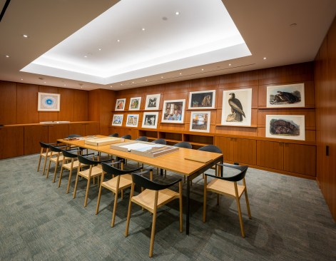 As part of the project, Schwartz/Silver also designed the Gentling Study Center at the Amon Carter to provide scholars and the public with dedicated research and study space. The Study Center echoes the adjacent library study room design, with teak wall paneling and midcentury furniture.