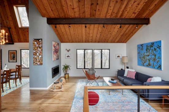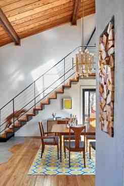 Designed for an acclaimed video editor and architectural photographer, this upstate New York home was a truly unique gut renovation. The existing home had character and qualities that deserved to be kept intact, however the layout of certain social and private spaces were not being utilized to their fullest potential. Walls and finishes were removed completely to allow for the updates, which feature a solid oak and steel cantilevered staircase up to a loft that had been closed off previously.