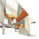 “Architecturally, it marks a turning point in their work and is the first in a series of public buildings that explore circulatory intrigue. Comprising the usual array of offices, meeting spaces, café, auditorium and bookshop, An Gaeláras uses the standard lexicon of contemporary cultural buildings. Where it differs, it succeeds best. O’Donnell + Tuomey has neatly side-stepped the obvious pitfalls of a building of this type. It has neither made a divisive icon nor created a civic museum, both of which would have alienated at least half the population and dulled a living language. Instead, it has made a home for Irish-speakers.” – Stephen Best [via ArchitectsJournal at http://www.architectsjournal.co.uk/2011-stirling-prize/an-gaelras-by-odonnell-tuomey-architects/8620411.article]