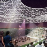 The River Balcony stands as a singular element, seemingly floating in space and attached to the 11th Street Bridge by three narrow points of connection. Perched 30 feet above the river, the balcony contains a children’s play garden, a skim pool, a stepped amphitheater, and a three-story community and education center. The billowy canopy above will be an eye-catcher, yet, like a noble and grand old tree, it fulfills multiple and vital needs: providing shade, funneling prevailing breezes, supporting greenery and solar panels, framing public art, and creating the setting for gatherings, frolic, and play. As the centerpiece of the design, the River Balcony will stand as a symbol of CREATIVE SUSTAINABILITY, contributing to ANACOSTIA LANDING becoming a 21st Century model of ecological place-making.