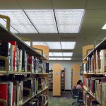 The luminous ceilings had light-transmitting acrylic prismatic sheets laid in a suspended T-bar ceiling grid and installed beneath a reflective light box containing fluorescent tubes. The acrylic sheets had not aged well, according to Andrea Gifford, Group 4 Architecture principal and director of interiors. “The lenses had discolored – and some had been replaced not in-kind,” explains Gifford, “so there was a variety of lenses. They had yellowed over time, and one of the big concerns the library had was that the lighting levels had decreased. Obviously, a library space is very dependent on the right amount of light.”