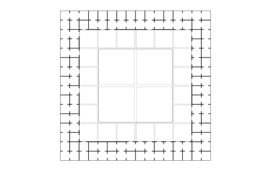In Another Digital these tendencies and biases of the digital format are manifested through the figure of the labyrinth. Visitors to the exhibition are confronted with an enormous labyrinth-like cabinet composed of 420 separate galleries densely packed with hundreds of objects and drawn experiments. These objects recur throughout the cabinet in varied representations, materials and scales, transfiguring in form, scale or materiality as they recur throughout. The cabinet builds from a simple set of four chambers at its lowest level to a diffused field of rooms at the zenith.