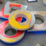 The individual platform elements seat 6-8 people and can be spontaneously stacked and aggregated into larger arrangements to increase flexibility. Although simple in form and playful in shape, the platforms are precisely calibrated to cantilever and balance when stacked to be used as seating, work surfaces and communal tables. The voids cut in each platform lighten the individual units and open alternative possibilities for improvised gathering around these "primitive” communal shapes.