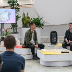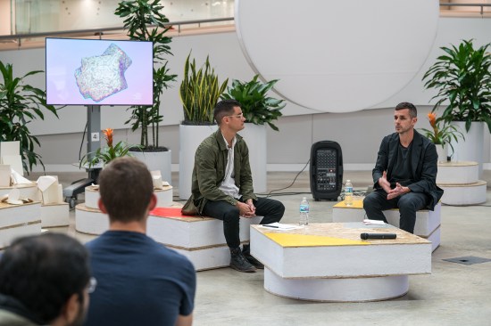 Another Stack is an experimental environment composed of flexible platforms for hosting events, lectures, workshops and everyday gathering in a large commons space. The environment design includes furniture, a large circular drum for image projection, plants and integrated lighting elements. The environment is re-arranged on an almost daily basis by users sitting, working, talking, eating, meeting and even sleeping.
