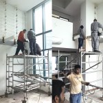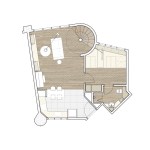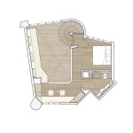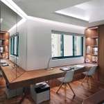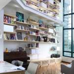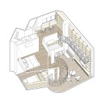 While its location is adjacent to a busy road, it is pleasantly shielded from the traffic noise and views by having a sea of green canopies outside its living space. To leverage on the large and generous double height window along with high ceiling space, our primary design intervention was to insert a floor to ceiling library with a mezzanine viewing deck as the main focus of the apartment. The lower portion of the library is accessible from the living room while the higher areas are accessible from the level 2 study space.