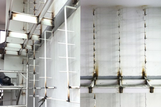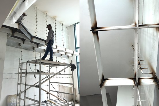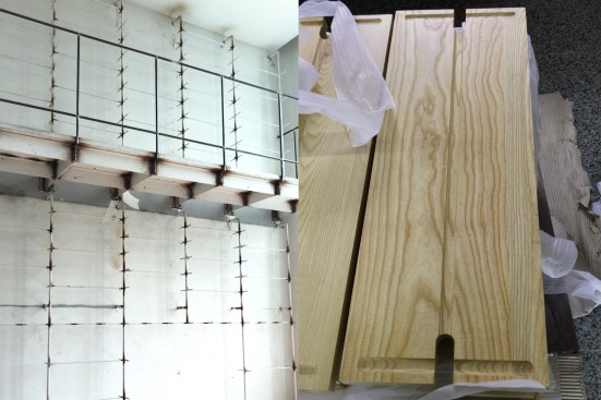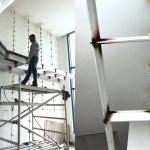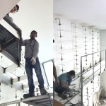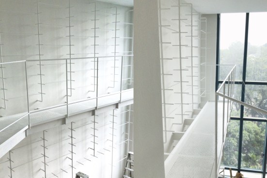 Inspired by the family’s appreciation for music, we decided to use Chopin’s Nocturne Op.9 No. 2 score as a conceptual strategy for the design of the library. Like the musical notes, our vision was an array of floating planes suspended in the air via a series of thin structural members. This was achieved through the use of industry standard reinforced steel bars at 25mm and 13mm diameter welded together to form the base structure. A mezzanine deck constructed of lightweight perforated steel was further inserted between the upper and lower portions of the structural system. Finally, 63 pieces of 33mm solid white ash planks were bespoke with routed slots to rest onto the library structure without the need for any fixing to complete the library design.