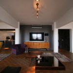 To avoid feeling low right foot, was not used plaster lining. The concrete beams were maintained apparent and the lighting was resolved with the use of rails and spots.