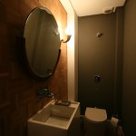 The old apartment was only taken advantage of the parquet floor, which received only grinding and wax. The wooden blocks left over, were used as the toilet wall cladding.