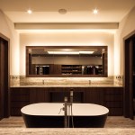 The master bathroom has the particularity to locate the tub at the center of the space, making it a landmark at the bathroom hall that delivers to the different áreas, indicating the dressing room space.