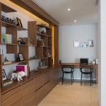All the bedrooms are grouped in a specific wing of the apartment. The master bedroom is complemented by a T.V. room that functions as a vestibular chamber and that makes a different dynamic in its interior.