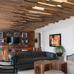 The room and the family room are unified through the ceiling design, a prefabricated lattice made of reclaimed Wood; in its hollows are located the luminaire which provides light, indirectly, to these two spaces.