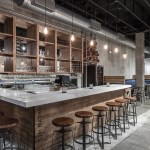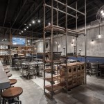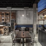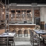 The interiors of the space were inspired by the scaffoldings seen throughout the ever-evolving New York City streets. With a total of 280 miles of protective sidewalk scaffolding in front of close to 8,000 buildings in New York City, the otherwise industrial material has become synonymous with the identity and architectural experience of the city. The deep and narrow space became segmented by functional screens made up of repurposed scaffolding, designed to display the fresh ingredients used in the kitchen. Based on the client’s unlimited need for storage, the repurposed scaffold displays help give prominence to the duality of a brand made up of New York City and fresh ingredients. Without a forced brand, the environment resonates an unforgettable identity, a personality that is both similar to the original space and suggestive of the cuisine’s heritage.
