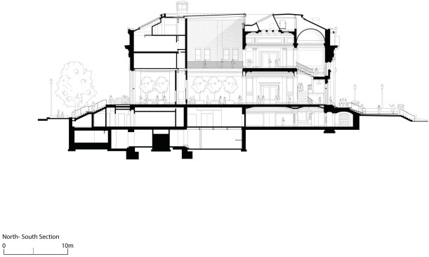 The listed Beaux-Arts style building has been restored to its previous grandeur, with entrances on both sides of the north-south axis, creating an inviting urban route through the building. The southern entrance, which was the original entrance to the library, is fronted by a grand plaza that will host public concerts and events. The heart of the building has been transformed into a soaring double-height space, capped by a new skylight that brings natural light deep into the interior spaces. Here, the Forum forms the vibrant, creative hub of the building, where experts from various fields will entertain and inspire the local people. The audience can view the performances and workshops from two levels, creating a lively and interactive experience.