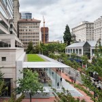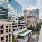 Above the occupied retail space grows a green roof system that not only acts as a fourth facade to the surrounding towers, but also contributes to the overall health of the building and well being of the city of Portland.