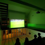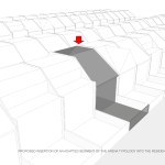 On an event day when the owners’ guests congregate to enjoy the screening of a live sporting event or movie, the sliding doors and curtains of the bedrooms at 2nd storey and the master bedroom at attic level retract to become box seats in addition to the seating structure at first storey. Collectively, they transform into a segment of the arena seating bowl with a sixteenfold increase in occupancy.