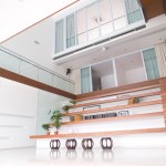 The intermediate terrace house design departs from the conventional “layered cake” spatial organization, a typology that is often driven by the desire to maximize floor plates and real estate within the allowable building envelop in the high property prices market in Singapore. The bedrooms, kitchen and dining area are organized to the rear end of the site while creating a high ceiling living room at the front to mimic the spatial relationship between the seating bowl and the event space of an arena.