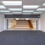 The checkerboard facade and boundary gate offer glimpses of the programmatic alternation between a regular domestic day and an “arena” event day from the exterior, alluding to an unconventional typological addition to the homogeneously subdivided residential district.