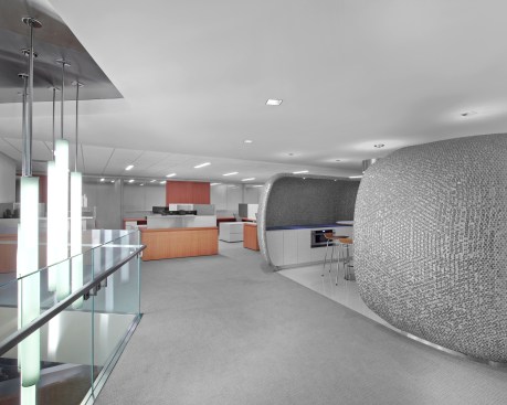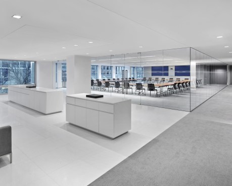 The design breaks down the distinction between the offices on the primes sides of the building and those that are not by visually opening up the interior spaces and establishing a draw towards the non-prime side of the floor for collaboration and support functions. These open work areas are intended to be flexible areas capable of supporting the departments or law firm practice support functions, including litigation and case management.”
