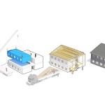 All this visual gamesmanship unfolds around 72 units, including studio apartments (located in the one stand-alone building) and communal co-living suites (in the three opposite structures) that will house single workers, the recently homeless, or low-income families. Playful as the buildings are, their decidedly domestic appearance and village-like arrangement serve an important purpose: creating a warm, communal atmosphere while making the most of a marginalized site.