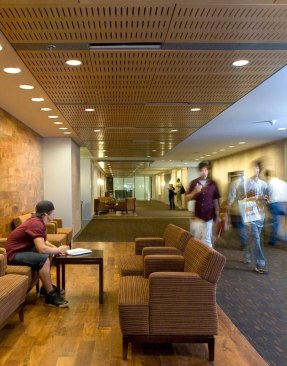 The Memorial Union (MU) is the epicenter for student and academic life on the campus. Approximately 30,000 people a day use the 350,000 sf facility which includes extensive food, retail and other student life amenities, gathering areas, a conference center, and administrative offices for the university and student organizations. Renovating the conference center provided the opportunity to address significant programmatic and operational shortfalls in the existing facility. A new plan was developed that provided additional large meeting rooms and storage facilities along with new corridors and public areas featuring new seating and display niches. In November of 2007, a fire caused extensive smoke damage to the Memorial Union, requiring the entire facility to be closed. The first floor-food and retail areas of the building were quickly brought back on line while 95,000 sf second floor conference center and 10,000 sf administrative office area were completely modernized. The original building was built in 1954 with further additions in 1972 and 1984. Concurrent with the building renovations, Studio Ma redesigned the entry plaza to better serve the campus.