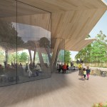 New public plazas and gardens at the north and south entrances of the Arts Center will foster deeper connections with the park. Planted groves along the west side of the building will create a forested edge that blends into the park. A framework of new trees will, over time, merge with the existing canopy to form a park forest.