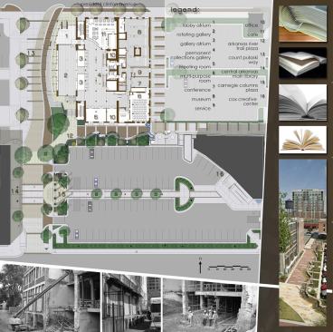 The Arkansas Studies Institute (ASI) is a repository for over 10 million historic documents and the papers of seven Arkansas Governors, including President William Jefferson Clinton. Located in a thriving entertainment district, the design combines neglected buildings from the 1880’s and 1910’s with a new technologically expressive archive addition, creating a pedestrian focused, iconic gateway to the library campus – and the public face of Arkansas history.