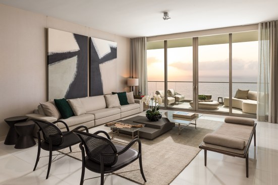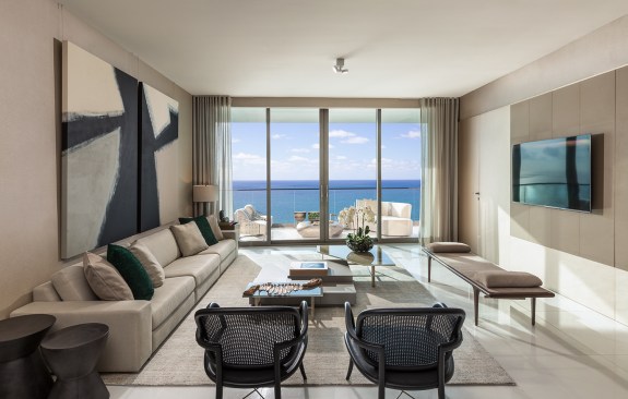With views of the serene Atlantic Ocean and the vibrant City of Miami (sometimes both), the turn-key residence is priced at $4.7 million. Other residences in the tower range from $2.9 million to $17 million, each with access to amenities such as a fine-dining ocean-view restaurant and bar, a cigar room, a 24-seat movie theater and a club-inspired game room.