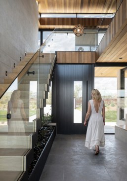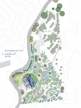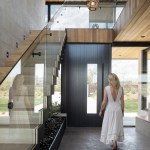 Upon approach, an elevated, horizontally-clad zinc volume is presented, both transparent to focus attention on the distant ridgelines, and semi-reflective to capture the impression of the clouds. Entering below the elevated mass and into the living level, primary apertures located on the perimeter and secondary fissures between the pavilions collage distinct mountain and sky views. Split-level interior spaces expand into exterior terraces, collapsing the domestic environment upon the rural landscape.