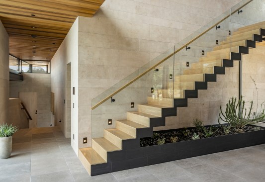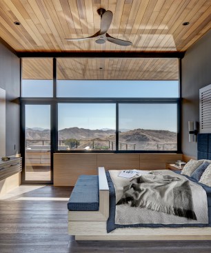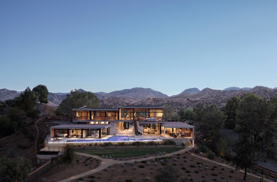 In response to the challenge of creating spaces to view, measure, and engage with the diversity of the surrounding semi-arid landscape, the Arroyo Oak House is open and transparent, immersed in natural light, and visually integrated with the surrounding Sierra Pelona Mountains. Optimizing the connection to this unique topography, multiple interlocking program-specific pavilions are oriented across the site. The placement and overlap of these pavilions result in varying scales of gardens, terraces, and decks, encouraging landscape elements to literally and perceptually permeate the home’s interior.