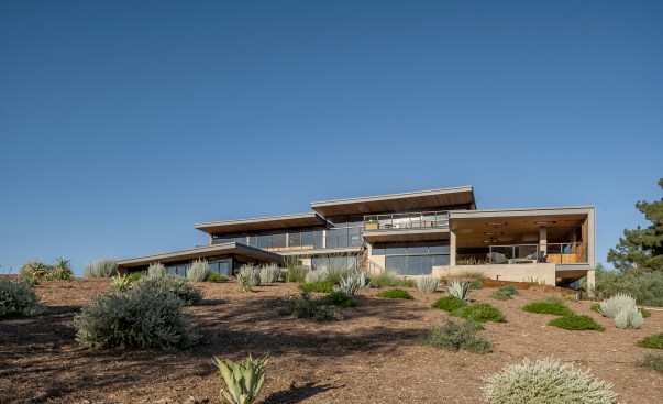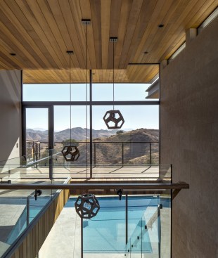 Weary from years of two-hour work commutes, the project owners engaged ANX to develop a new residence within a mile of their Southern California manufacturing company’s facility and offices. Interested in maintaining a similar connection to the land as their current residence, an undeveloped rugged sandstone terrain, bisected by a dry river and dotted with native yucca, oak, sagebrush, and beavertail cactus, was selected as the site for the new home.