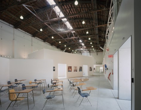 Recognized internationally as one of the best design schools in the country, Art Center College of Design’s campus has been tucked away into Pasadena’s Linda Vista Hills for over thirty years. Richard Koshalek, the president of the school, began an ambitious plan to develop a satellite campus near the center of Pasadena’s downtown. In so doing, the school came “down from the acropolis to…a gritty industrial neighborhood,” which it means to transform in part as “a way of bringing the school directly to the city.” The first in a planned series of buildings is the Graduate Fine Arts & Public Education, or South Campus, Building. The original building complex was built by Caltech after World War II for a consortium of five aircraft companies and was called the Southern California Cooperative Wind Tunnel. It was upgraded in the mid-’50s to house one of the world’s first giant supersonic wind tunnels. But in the 1960s, the building was taken over by the Dacor Corporation, an appliance manufacturer, which used the central structure as its main factory and added additional work structures. The building had very few windows or access to the street and a convoluted floor plan. The immediate design goal was to create physical connections among the main wind tunnel building, the accessory structures, its activities, and passers-by on the street while reflecting the school’s own history of innovation by using technological advances in both design and engineering. The exterior was simply sandblasted to reveal the original raw materiality and strong building volumes. Key to the success of the project was the development of a rational and intuitive way-finding system to replace the difficult circulation problems of the existing structures. New partitions form flexible teaching spaces that can be used for graduate students as well as public education. At the entrance a new exterior sculptural stair provides visual focus and easy access to every level of the building. The existing building posed both a challenge and an opportunity. The wind tunnel’s complex of concrete buildings had few windows and large, uneven, dark spaces. To open up the building, windows and skylights were cut into the thick street-front concrete walls and the roof, bringing light into classrooms and studios while making the program visible to the street. Three large strategic cuts were made in the roof to form the base of the sculptural skylights that were custom designed by the architects in collaboration with graphic designer Bruce Mau, ARUP structural engineers and Foiltec technicians. The skylight system is built of translucent ETFE films stretched on a custom-designed structural frame. Three thin printed layers of Foiltec (a Teflon-coated polymer) comprise the pillows within the structural frame. Via compressors these layers are inflated or deflated to adjust the amount of natural light and heat entering the building. These sculptural elements rest in the roof top garden of native grasses and form the boundaries of what is now the campus quad. The building is among the first in Pasadena to be granted LEED certification from the U.S. Green Building Council and one of the first renovated buildings in the country to achieve certification. The Graduate Fine Arts & Public Education Building has transformed a dark industrial space inhospitable to teaching the fine arts into a creative educational facility and cultural center open to all Southern California residents.