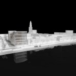We propose a simple building volume with two poles: The Film Theater facing the city, and the Art Museum facing the river. Combining a contemporary exhibition facility with a film theater in a vibrant public building is a paradoxical challenge: Most successful contemporary art galleries are characterized by control. The Film Theater, on the other hand, is inherently a black box – an introverted space for contemplation and focus.