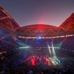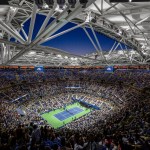 Covered by 190,000 square feet of Teflon-coated, fiberglass membrane (or PTFE fabric), the roof maintains the stadium’s outdoor quality of daylight transmission while blocking 90% of the solar radiation. Engineered to operate on demand and open and close within 10 minutes, computers keep tabs on over 4 dozen sensors simultaneously tracking not only the precise movement of the roof down to the 1/8”, keeping it in perfect alignment but also, wind speeds, seismic activity, motor speed, torque and voltage and more. The impressive 250’x’250’ wide opening gives fans the experience of being in an outdoor tennis stadium while ensuring that inclement weather never delays the US Open.