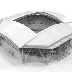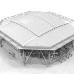 Completed for the 2016 US Open, Arthur Ashe Stadium’s innovative $150 million retractable roof is the largest of any tennis stadium in the world. The lightweight, octagonal roof measures 520’x 520’ (236,600 square feet) in plan and is supported by eight steel columns located around the stadium’s perimeter. These tree branch-like columns sit on massive concrete bases, each of which is supported by approximately 24 piles driven 175 to 200 feet in the ground for maximum support. Four catenary trusses form the framing system that supports the roof, each spanning 460 feet to form the opening of the retractable panels, weighing one million pounds each. The trusses use a lenticular truss configuration that span between the eight column supports. Between the main trusses and a perimeter truss is a series of secondary one-way trusses, which are configured in a radial direction that support the fabric roof. A third layer of structure in the roof plan creates a diaphragm, which are “X” braces coupled with circumferentially running beams. The last layer is the framing for the gutter around the perimeter of the roof, forming the structural shell for the roof.