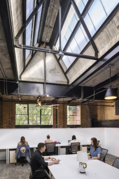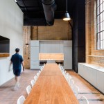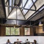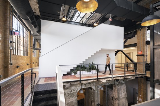 Situated in historic Shockoe Bottom, this project radically transforms the 1930’s Lucky Strike Tobacco power plant into a vibrant, day-lit headquarters for Arts & Letters Creative Co., a national branding and marketing agency based in Richmond. Arts & Letters has an open, collaborative working method and they do much of the design and production work in house, with creative, direction/production, writers, and video and graphics production taking place all under one roof. ARCHITECTUREFIRM’s approach respects the existing historic brick and tile building by removing all previous work and creating a clean pair of white program insertions to capture the additional working and making spaces for this dynamic company.