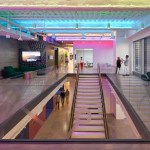 The goal is achieved by creating an open, sustainable, and amenity-rich workplace overcoming tight schedules and move-out, move-in deadlines. Organized around a central, three-story open stair, the design promotes transparency, agility, and creative thinking. The bold use of color on all floors integrates uniquely Los Angeles and SoCal themes, including nature and technology.