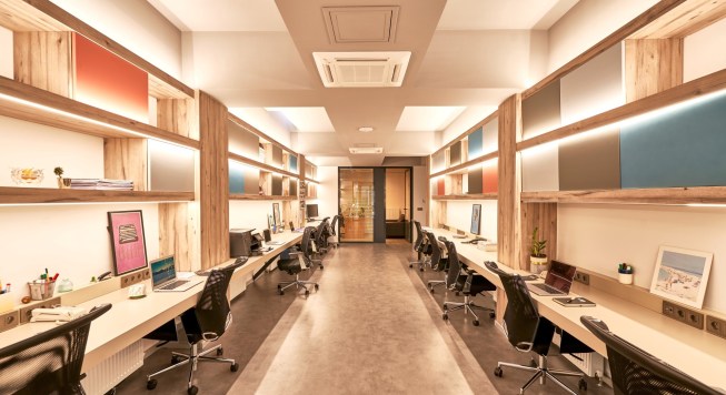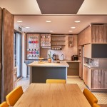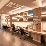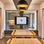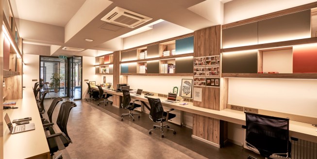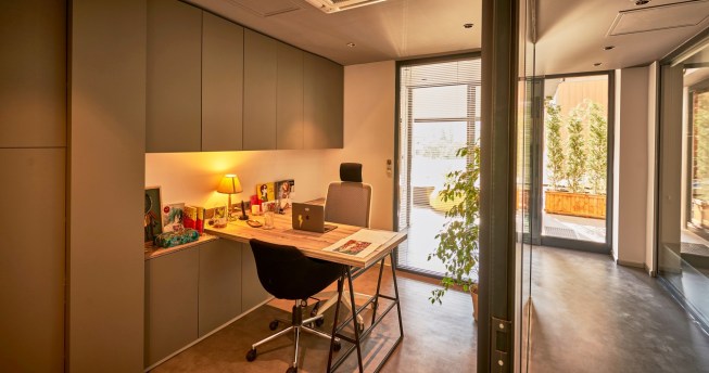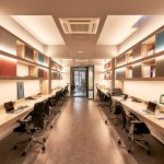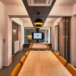 The open office space is designed as a two-sided long table, all with linear light shelves, a bright, warm atmosphere and a spacious artery that can be easily operated. The light chimneys opening to the terrace above this area were reinterpreted and turned into natural lighting with daylight. In the closed office spaces at both ends of this artery, glass dividers were preferred in order not to lose the natural light coming from a single facade. Thus, a general transparency was achieved in the space and natural light was brought to the deepest points. In addition, at the end of this area, namely the skylights that can provide natural light through the ceilings of the executive and accounting rooms, which were deep and dark, freed from claustrophobic effect and turned into spacious, high-ceiling and preferred working places.