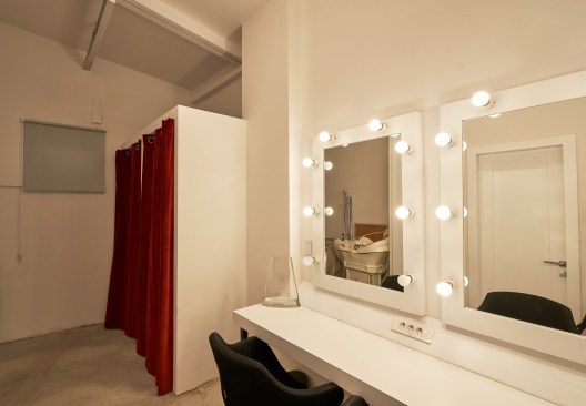 The space required for the studio should be at least 160 sqm. By its nature, a high ceiling was required, as well as an entrance of adequate size for the logistics of decor and light materials, as well as storage, showers, changing cabinets and vanity area.