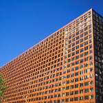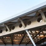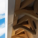 The Wooden Screen – The wooden screen shades the building on the two main facades. It creates the signature for the building and reveals the structure and gallery spaces beyond. Light coming through the openings in the screen cast beautiful shadows on the museum stairs, corridor and entry spaces.