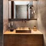 The spacious guest bathrooms are an experience in themselves and are located in a wooden cube with a hidden door at ground level. The vanity fronts are clad in finely processed and delicate Canaletto walnut, and above them, a double sink made of cast aluminum is installed. The atmosphere is complemented by an advanced sound system operated on demand.