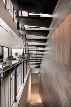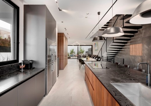 At one of the sought-after neighborhoods in Rishon LeZion stands a house that design enthusiasts would truly appreciate. Designed by Dorit Weinbren, the house is a showcase of meticulous interior planning that favors clean and challenging geometric lines, aesthetic devoid of compromises on the purity of natural and industrial materials, and powerful monochromatic tones. So here it is before you—a modern, precise, and sophisticated living environment that captures subtle emotions, centered around an architectural staircase connecting the four levels and creating a remarkable impact.