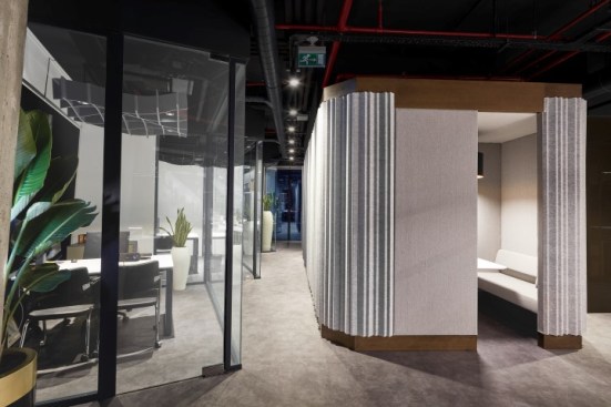 In the study areas, alternative seating units, acoustic meeting niches, telephone rooms, and desks and that can be raised and worked on while standing, were the elements that Iglo Architects has used to offer an efficient environment which will raise the mood of young employees and avoid the possible spine and posture deformations that may occur during long working periods. Felt panels, sound-absorbing surface forms, fabric coatings add acoustical value and enhance visual quality. The intensity-adjustable lightings are designed to achieve the desired atmosphere in the environment.