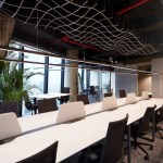 Special acoustic elements in the form of cloud hanging from the ceiling have used in all working areas and closed offices. All of these elements contributed greatly to the sound absorption that bounces and creates a cacophony due to the hard surfaces, which are the majority in the general office volume and contributed to the transformation of the place into a very quiet working environment.