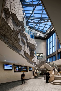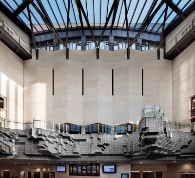di Domenico + Partners led the design of the new Atlantic Terminal Complex, a significant addition to the revitalization of Downtown Brooklyn. Located at the intersection of Flatbush and Atlantic Avenues, the complex’s new entry pavilion anchors the corner site and integrates new customer spaces, finishes, and graphics throughout. The terminal connects eight MTA subway lines and the LIRR. dD+P also provided guidelines for overall retail and commercial design at the site. The project has garnered awards from the New York Landmarks Conservancy, ACEC, and New York Construction Magazine.