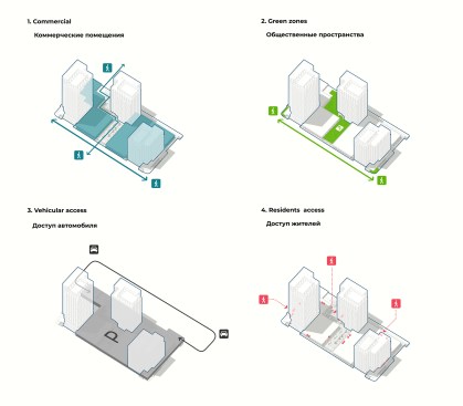 The combination of cubism fine art movement and the interpretation of the traditions of classical architecture are used in the composition of the design project. The primary emphasis is on the expressiveness of linear rhythms and light-color combinations of forms.