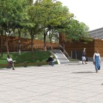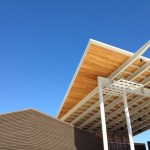 A light, sprawling steel canopy covering the stage projects toward the spectator area and mimics a similar steel canopy projecting out toward the river over the concession/roof terrace building. Meanwhile, all buildings are dressed in a beautifully natural linear cedar slat cladding which provides an acoustical shell for optimum sound delivery and helps the pavilion seamlessly materialize in its natural river edge environment. The performance pavilion will seem to grow out of the land.